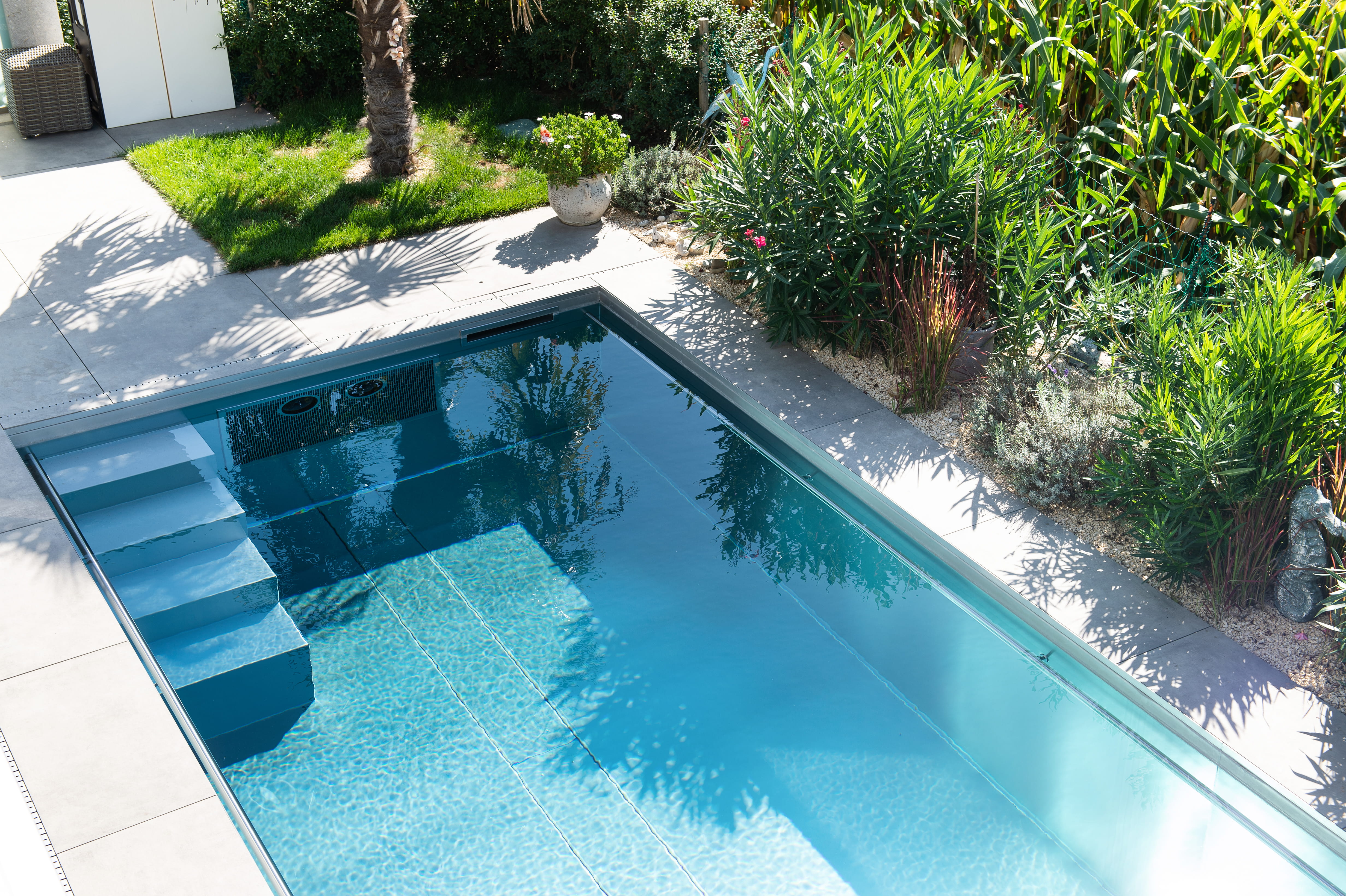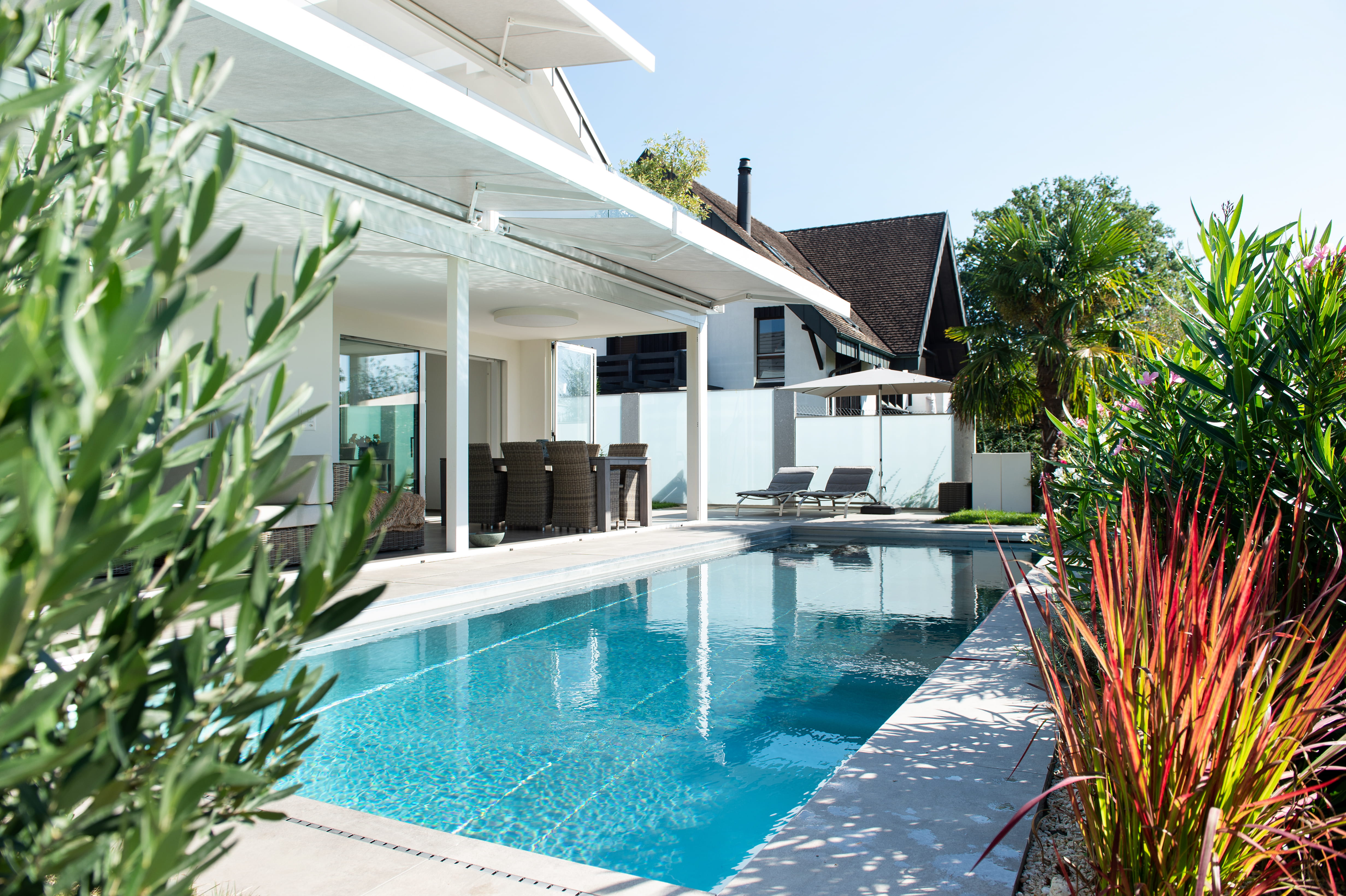 Das flexible, modulare System eröffnet zahlreiche Gestaltungsmöglichkeiten – vom eleganten Infinity-Pool mit fliessendem Übergang bis zum beheizten Becken für ganzjährigen Badegenuss. Moderne, energieeffiziente Technik wie leistungsstarke Filtersysteme und automatisierte Reinigungslösungen minimieren den Pflegeaufwand spürbar.