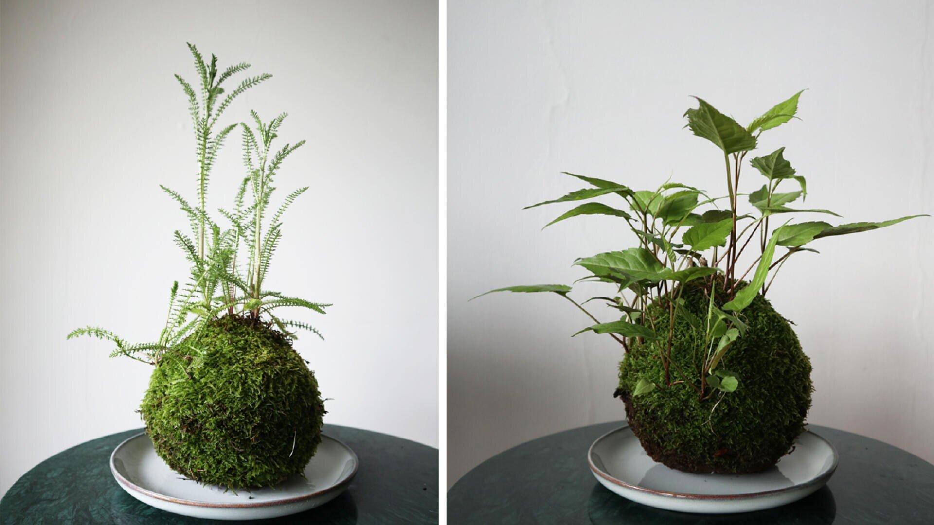 In unseren Workshops können Sie ähnliche Mooskugeln wie diese Beispiele aus meinem Garten herstellen. Sie wählen aus, welche Pflanzen Sie mit lebendigem Moos kombinieren möchten, um Ihre eigene lebendige Skulptur zu kreieren.