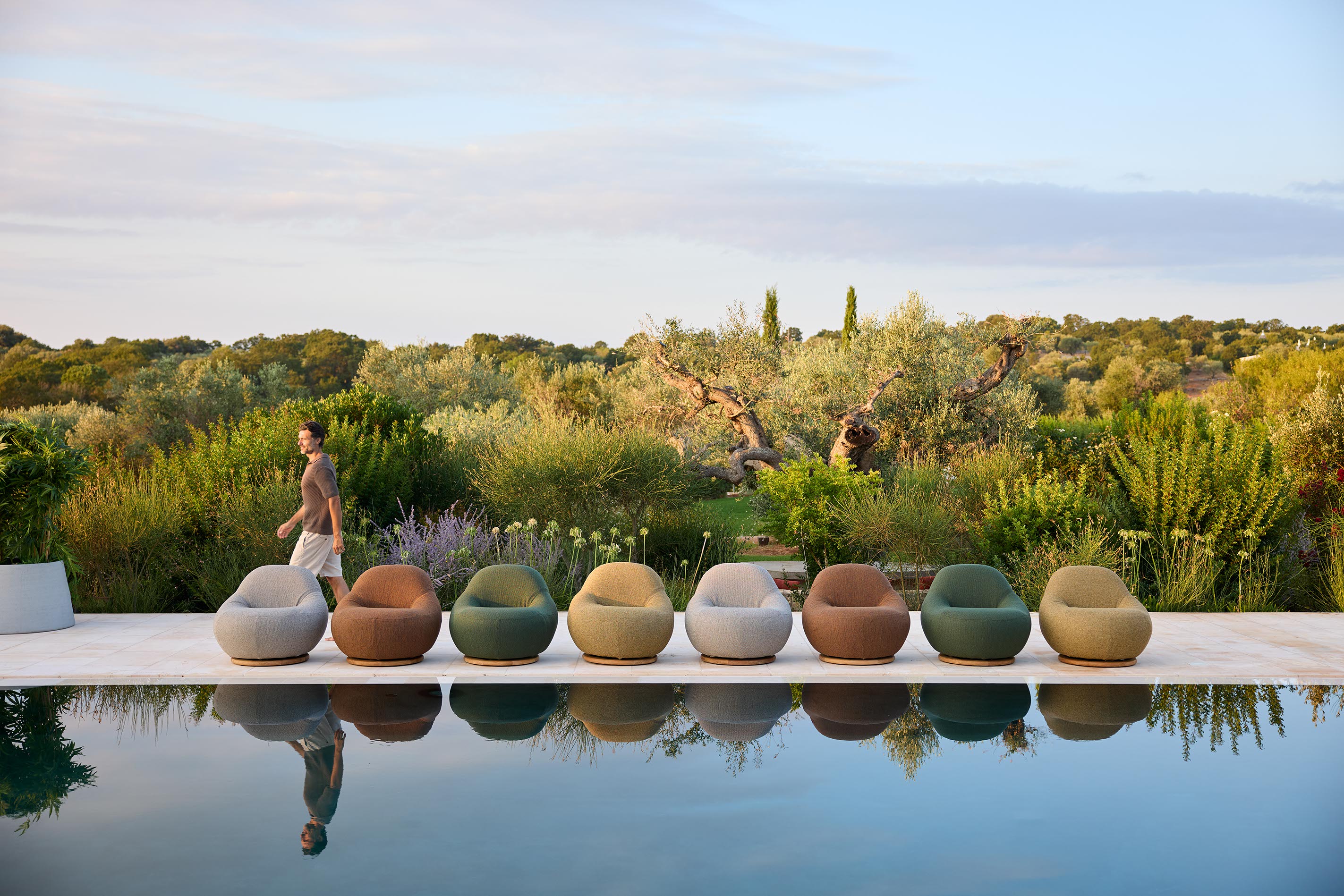 Die Neuheiten dieses Jahres präsentieren Designs, die sowohl Raum für Geselligkeit als auch für Rückzug schaffen. Der neue Loungesessel Gem bringt eine weiche und einladende Ästhetik in den Lounge-Bereich. Mit seinen organischen Formen, hohem Komfort und einem 360°-Drehfuss, der freie Beweglichkeit ermöglicht, wird Gem zu einem natürlichen Treffpunkt für Entspannung und Ruhe unter freiem Himmel.