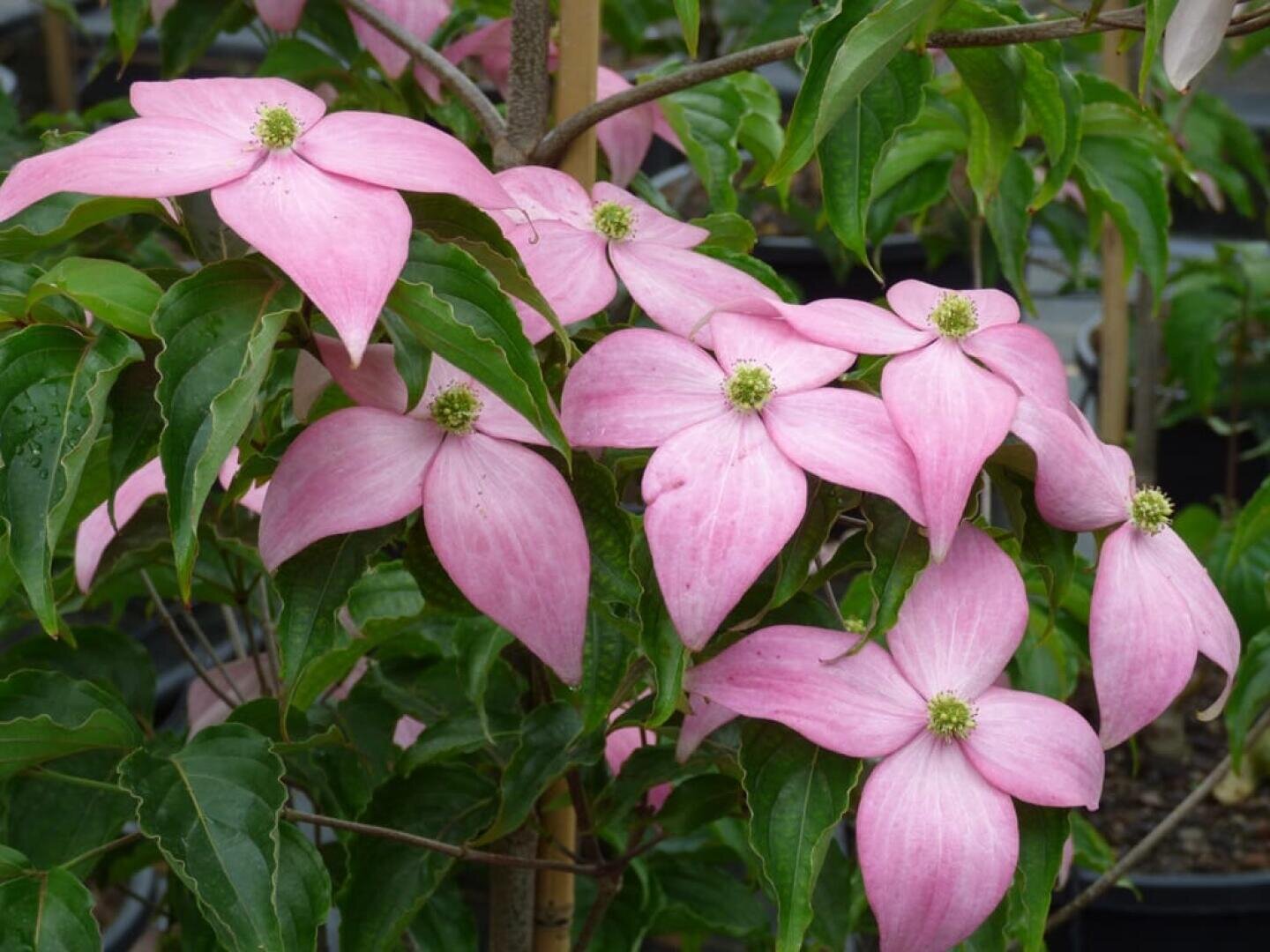 Mit einer beispiellosen Blütenfarbe in tiefem rosa hebt sich diese neue Selektion ganz deutlich von anderen Cornus kousa ab. Die mittelgrossen Hochblätter (Brakteen) sind in der Regel kaum überlappend, spitz zulaufend und dementsprechend sehr elegant.