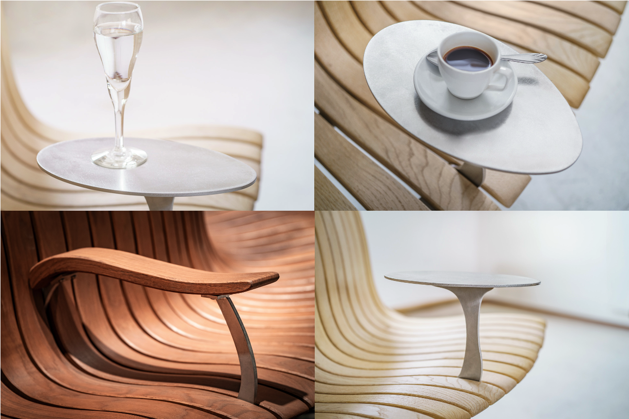 Haben Sie Interesse an einer HARMONICA inklusive individuell für Sie zusammengestelltem Zubehör? Wir fertigen die Tische und Armlehnen aus Esche und Eiche, selbstverständlich im gleichen Farbton geölt wie die Bank selbst. Die Unterkonstruktion wird wie immer aus langlebigem Edelstahl gefertigt. Bei den Tischchen empfehlen wir für den Aussenbereich die Variante komplett aus Edelstahl.