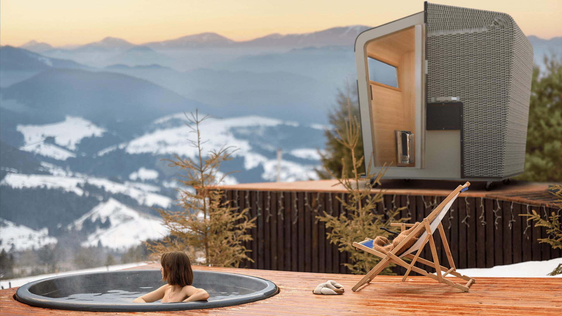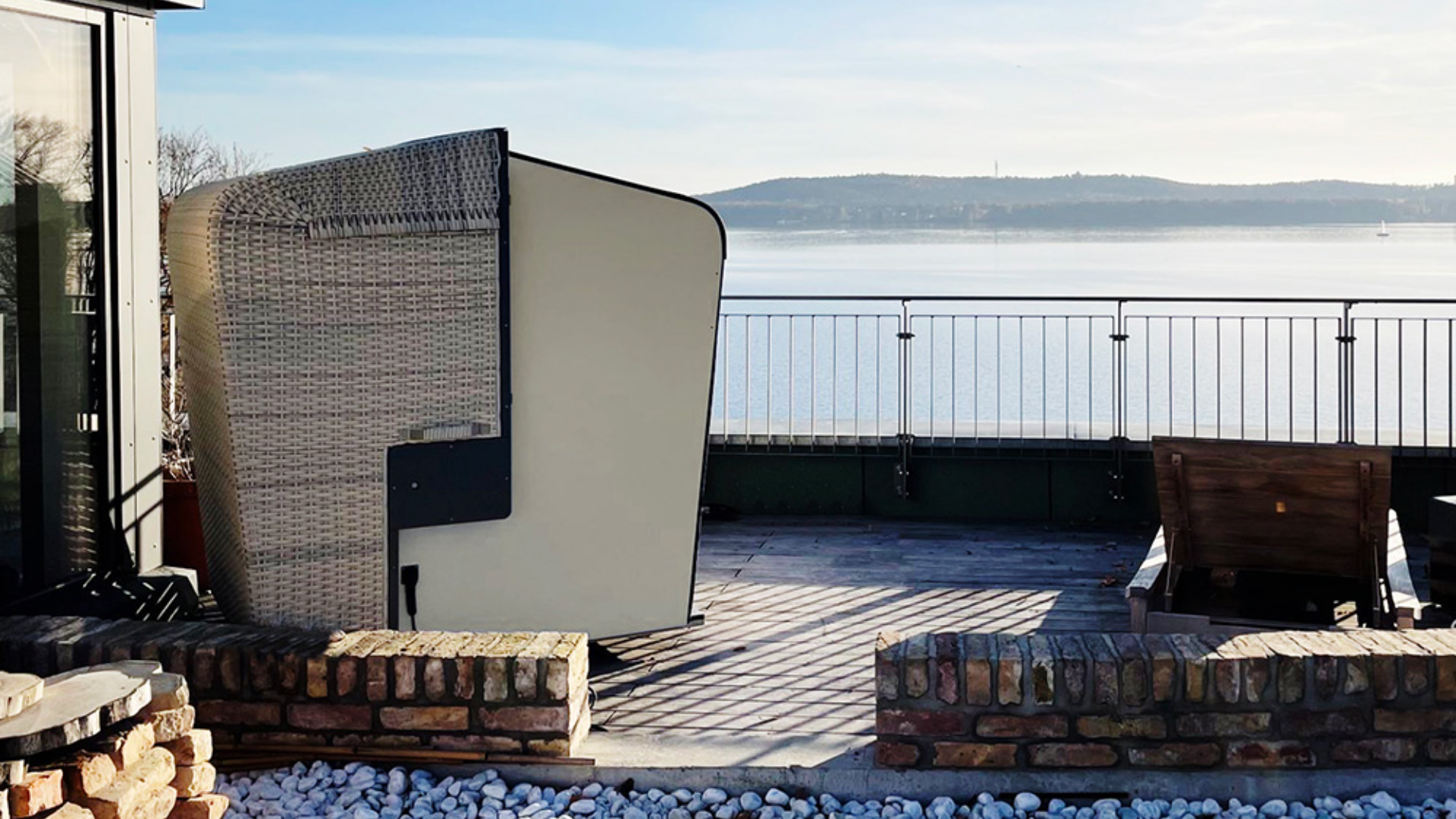 Strandkorb und Sauna. Zum erstem Mal in der Schweiz! Die ideale Aussensauna im Winter und der perfekte Strandkorb im Sommer. Gartensauna, Terrassensauna und Balkonsauna. Zwei sind Eins. An jedem Ort.