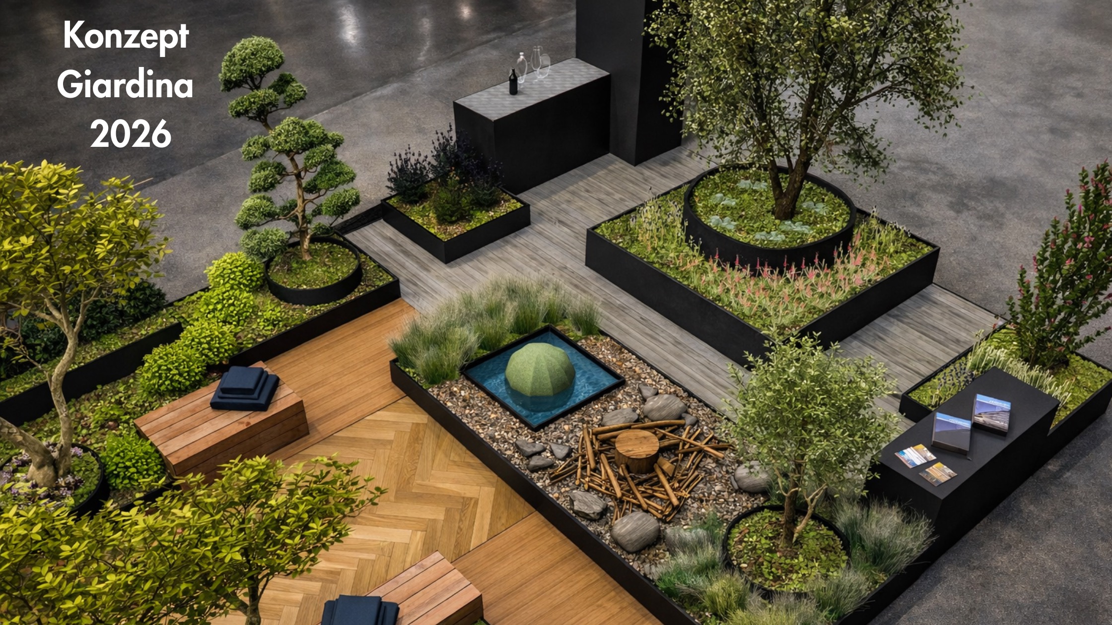 Ein Terrassengarten mitten in der Messehalle – mit Bäumen als Hauptdarsteller, Wasser als Ruhepol und einer Gestaltung, die Natur und Design verbindet. Entdecken Sie, was Besucherinnen und Besucher bei Alhena an der Giardina 2026 erwartet.