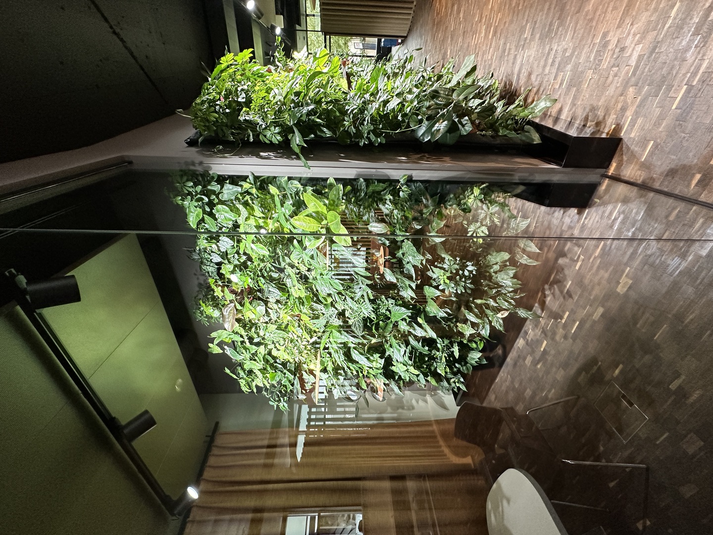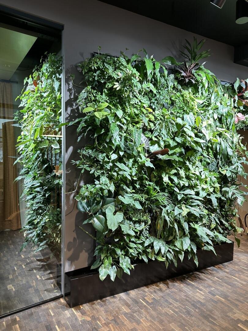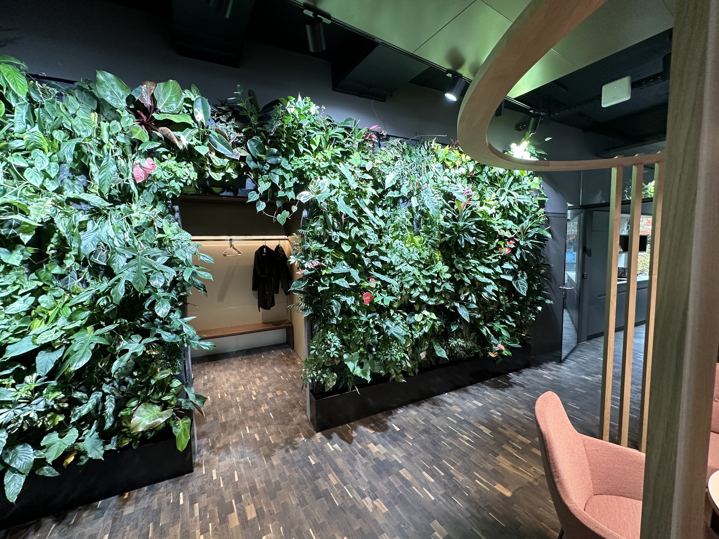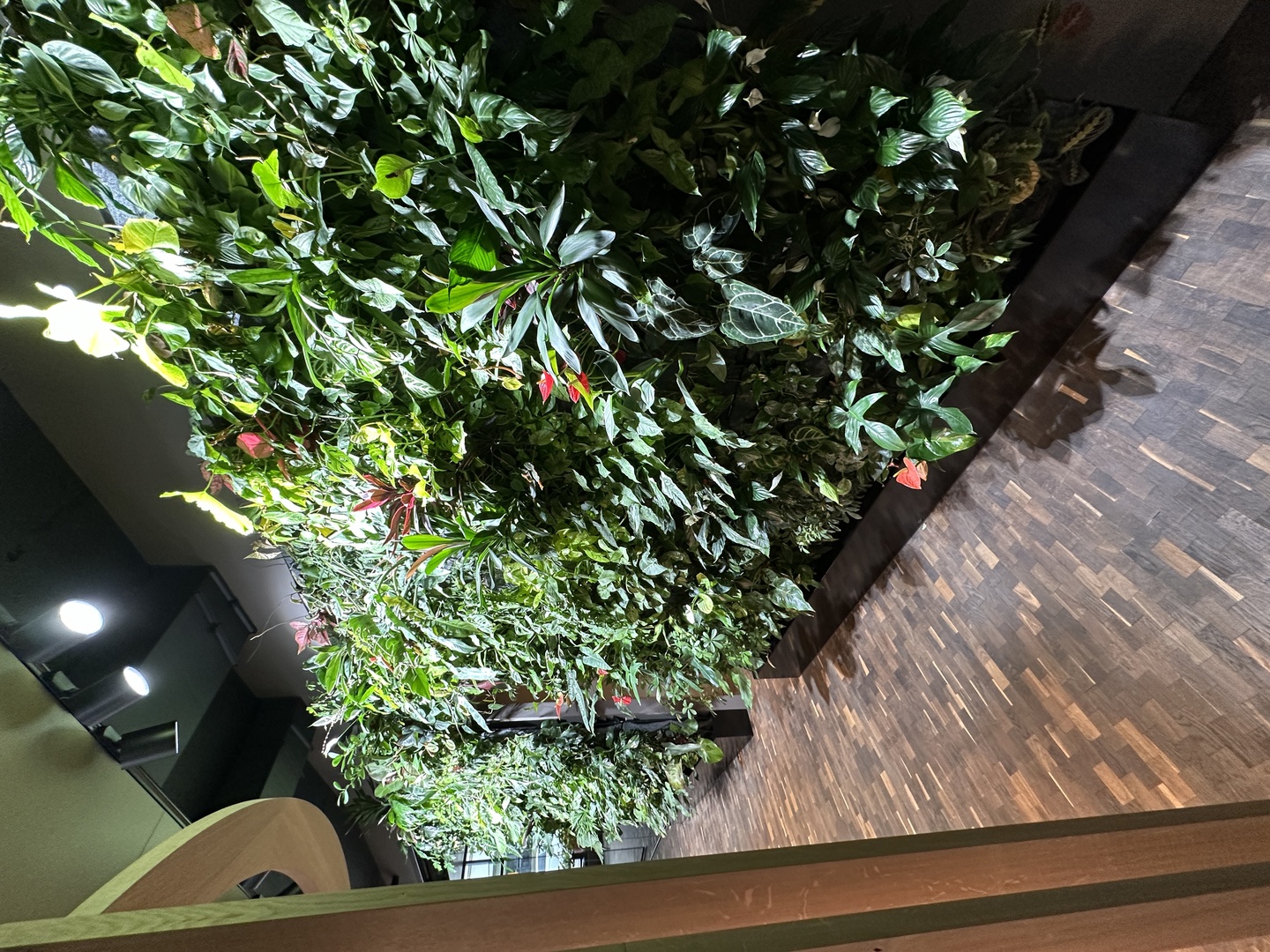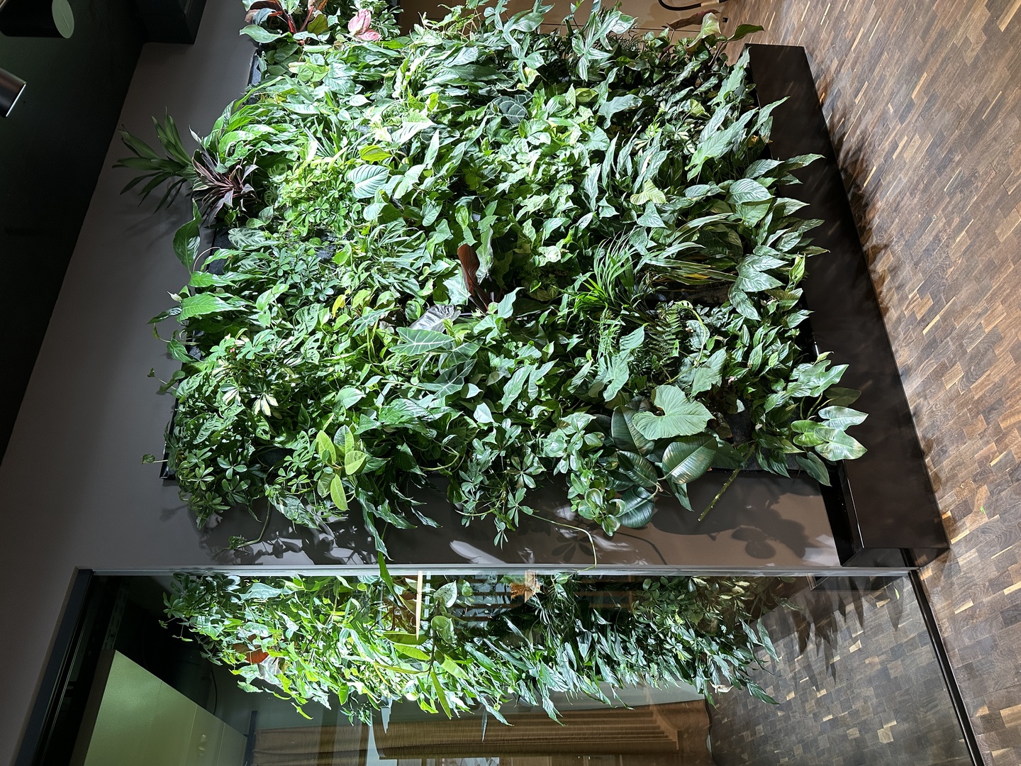 Our Swiss-made biophilic walls system ensures durability and maximum sustainability. With integrated automatic irrigation and fertilisation, as well as our regular maintenance service, the green wall remains permanently healthy and lush.