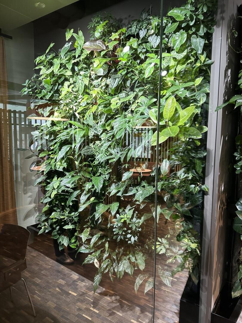 As part of the renovation of Bank BSU, Plant Works GmbH created a floor-to-ceiling plant wall with over 1,200 plants and integrated lighting. The powerful greenery extends throughout the entire branch, including the meeting rooms, giving it a fresh, lively identity.