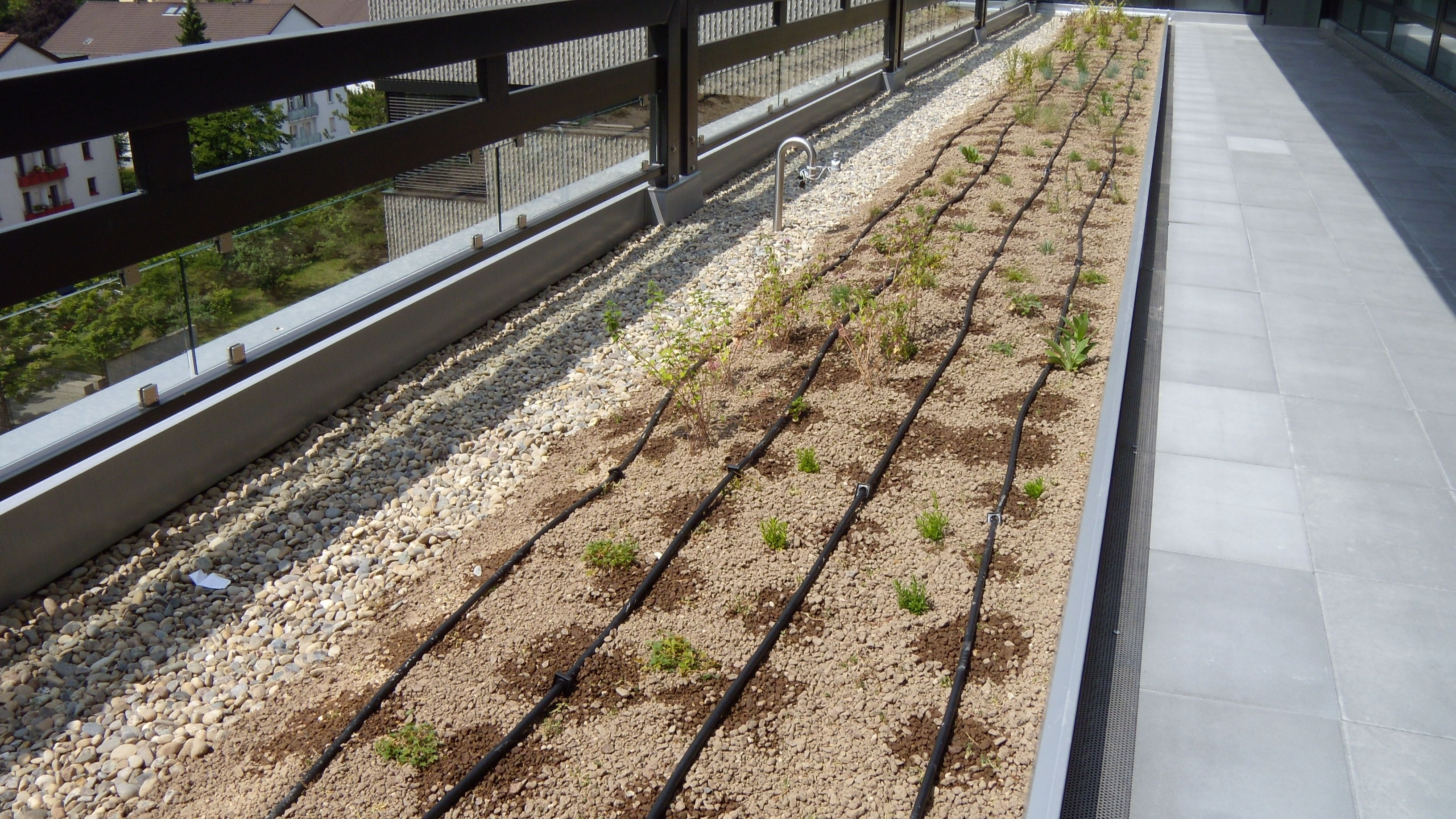 Automatic irrigation systems for balconies, terraces, and roof gardens make you independent of natural rainfall. Roof gardens and terraces are usually south-facing, which is why irrigation is so important to ensure healthy plant growth.
