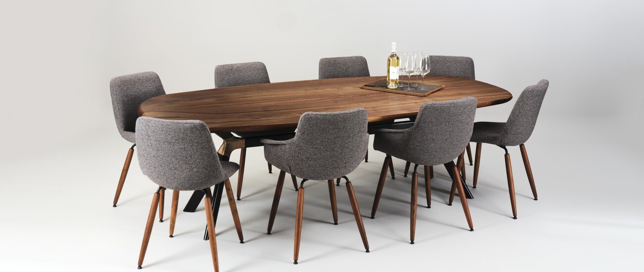 Individuality is a top priority at solid. From the choice of wood type – such as European walnut or rustic oak – to the dimensions and base options in stainless steel or bronze: your table will be configured exactly to your requirements. Experience for yourself how different surface treatments such as oiling, waxing or soaping affect the feel of the wood.