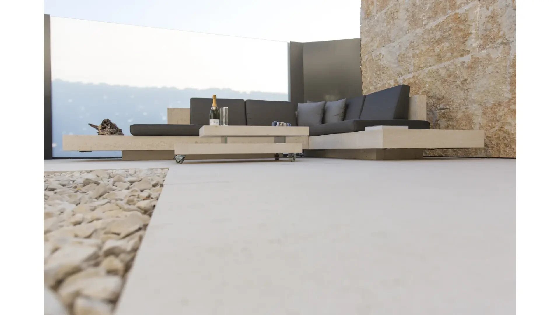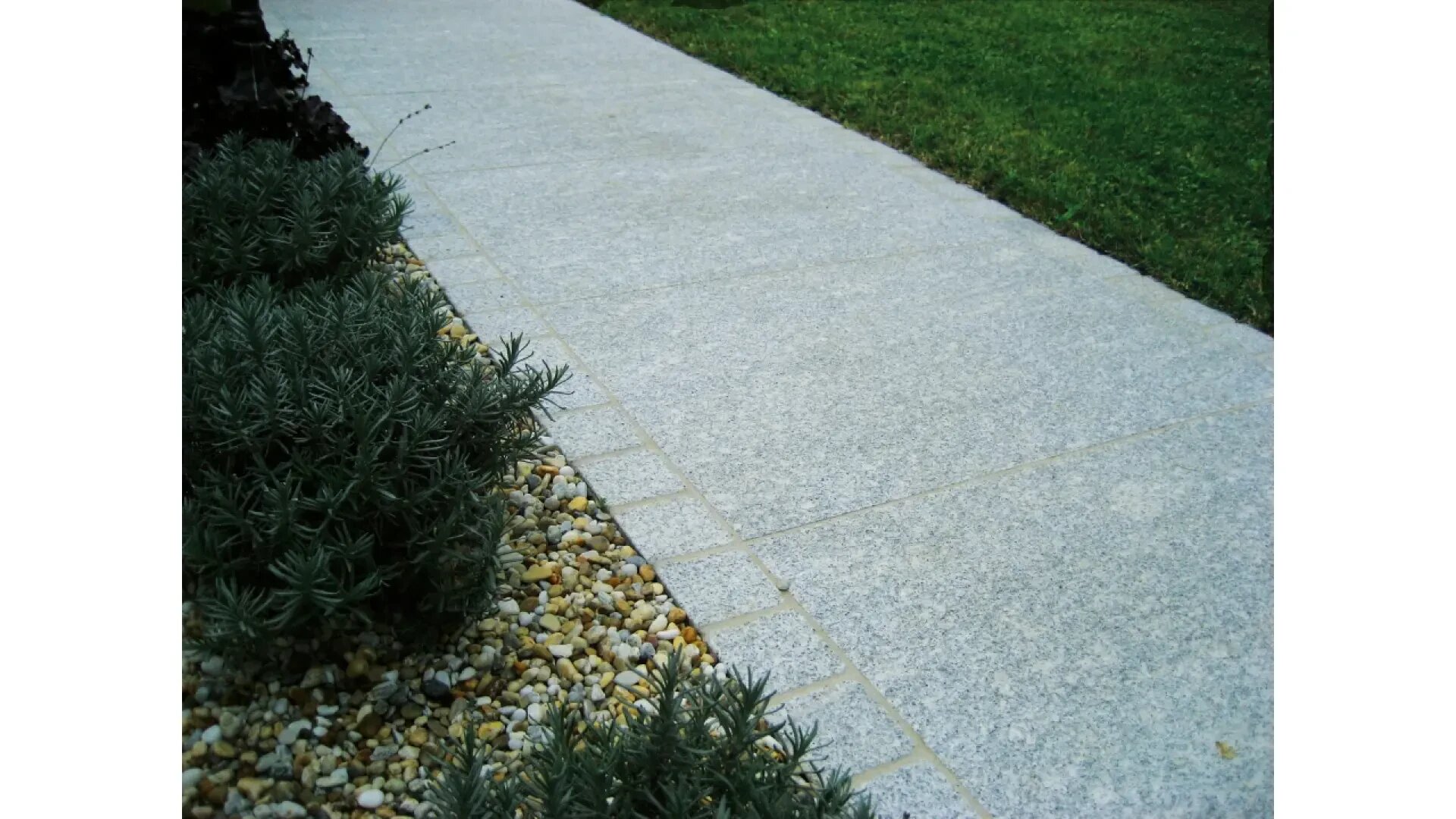 The homogeneous light gray granite from Turkey blends in very discreetly with modern architecture.