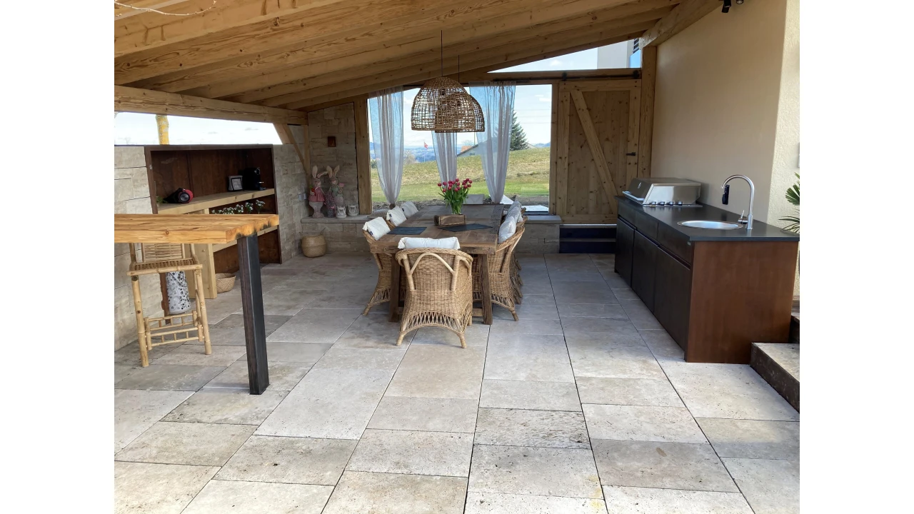 The new Turkish travertine in our Chambery family impresses with its compactness and is also suitable for shady areas because of its surface treatment.
